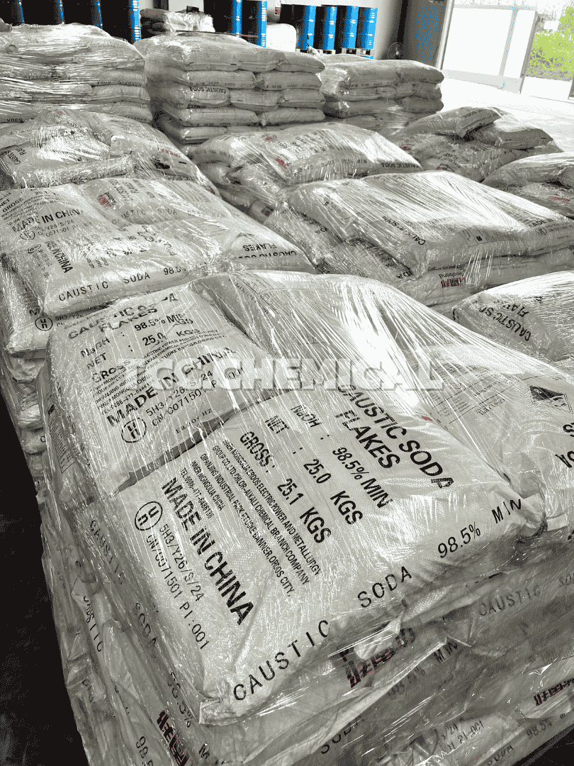 อัตราส่วน : NaOH 98.5% , ส่วนผสมอื่นๆ 1.5%