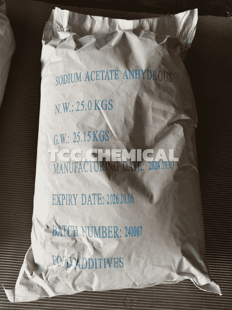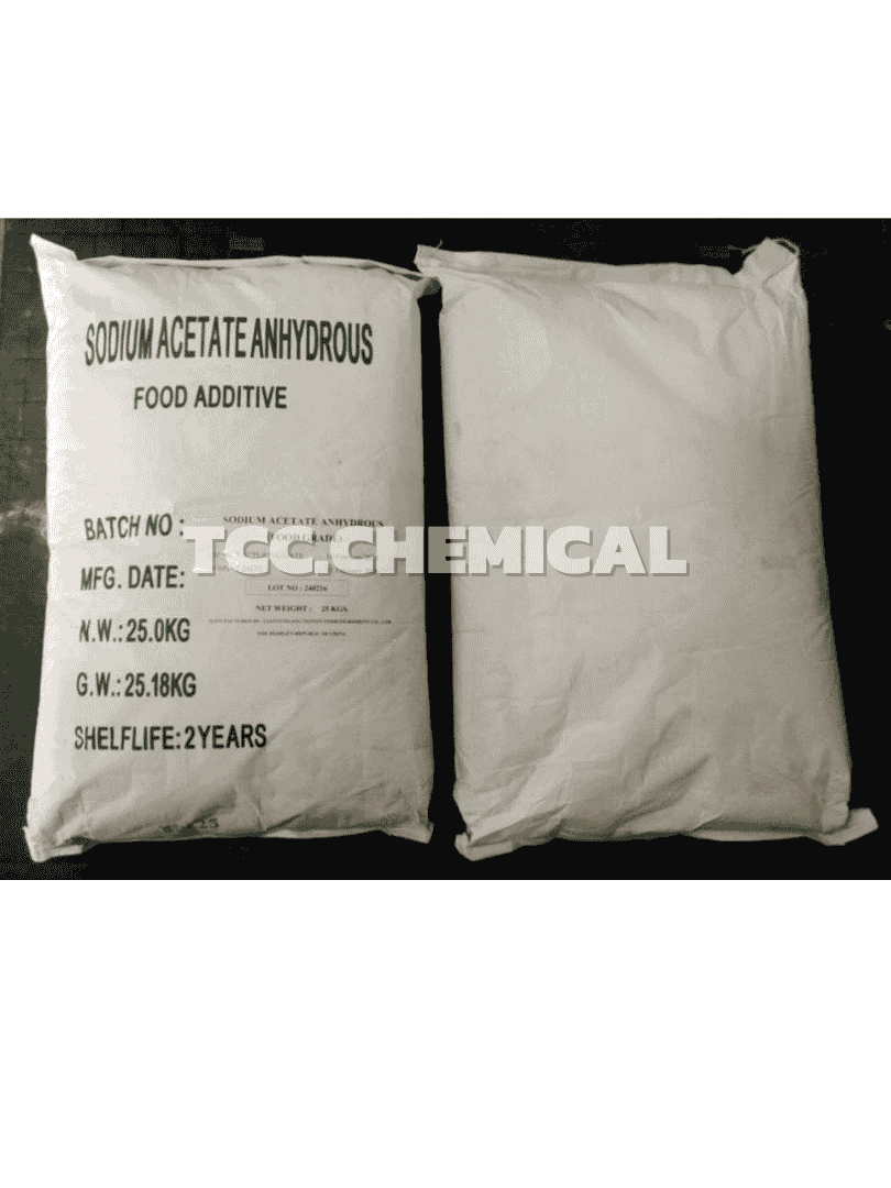 - Sodium acetate anhydrous คือ เกลือที่ได้จากการรวมตัวของกรดอะซิติก (acetic acid) และโซเดียม (sodium) ซึ่งอยู่ในรูปแบบปราศจากน้ำ (anhydrous) โดยสามารถสังเคราะห์ได้จากการกำจัดน้ำออกจาก Sodium acetate trihydrate ด้วยความร้อนสูง สารชนิดนี้มีความเสถียรสูงและไม่ดูดความชื้นจากอากาศง่ายเหมือน Sodium acetate trihydrate