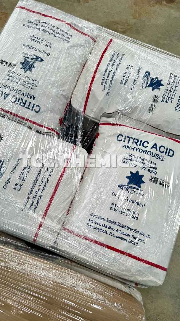 - Citric Acid Anhydrous หรือ กรดซิตริกชนิดแอนไฮดรัส คือกรดมะนาวในรูปแบบผงผลึกสีขาวที่ ไม่มีโมเลกุลของน้ำอยู่ในสูตรเคมี แตกต่างจาก Citric Acid Monohydrate ซึ่งมีน้ำ 1 โมเลกุลอยู่ในโครงสร้าง กรดซิตริกชนิดแอนไฮดรัสให้รสเปรี้ยวที่เด่นชัดกว่า มีความเข้มข้นและความเสถียรสูง เหมาะสำหรับการใช้งานในหลากหลายอุตสาหกรรม โดยเฉพาะอาหาร เครื่องดื่ม เครื่องสำอาง ยา และผลิตภัณฑ์ทำความสะอาด