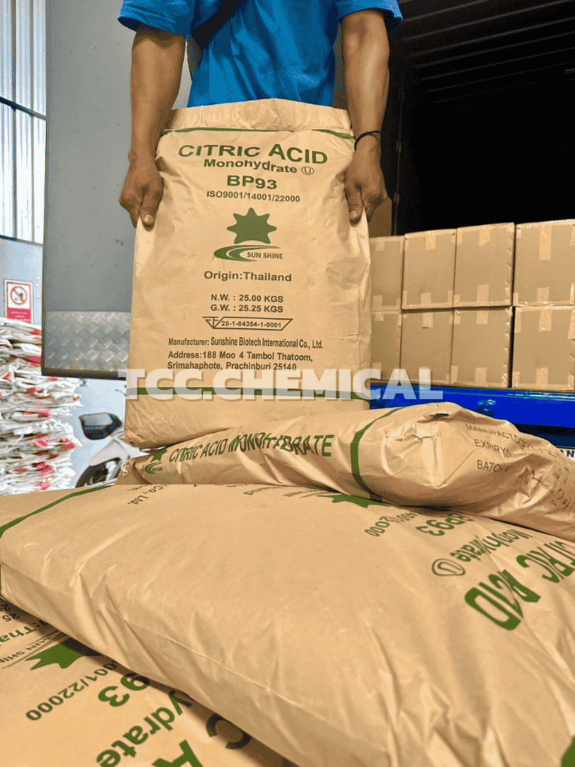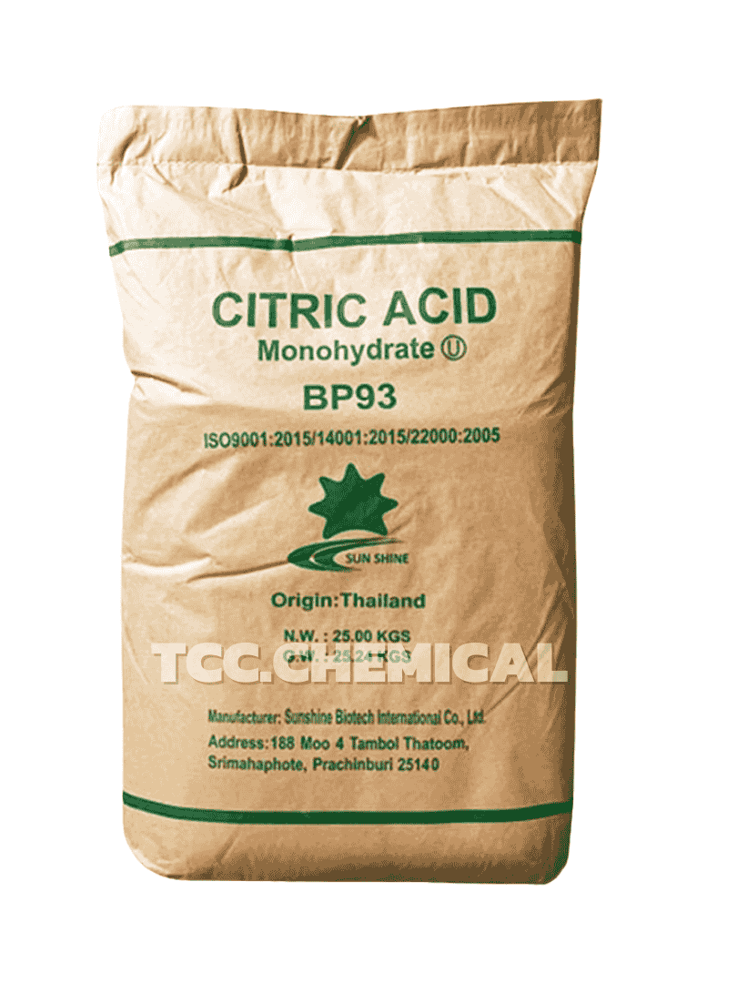 - Citric Acid Monohydrate หรือกรดมะนาว เป็นสารประกอบอินทรีย์ชนิดหนึ่งที่พบได้ในธรรมชาติ โดยเฉพาะในผลไม้ตระกูลส้ม เช่น มะนาว ส้ม และมะม่วง มีลักษณะเป็นผงผลึกสีขาว รสเปรี้ยว ละลายน้ำได้ดี และมีความปลอดภัยสูง เหมาะสำหรับใช้ในอุตสาหกรรมอาหาร ยา และการทำความสะอาด