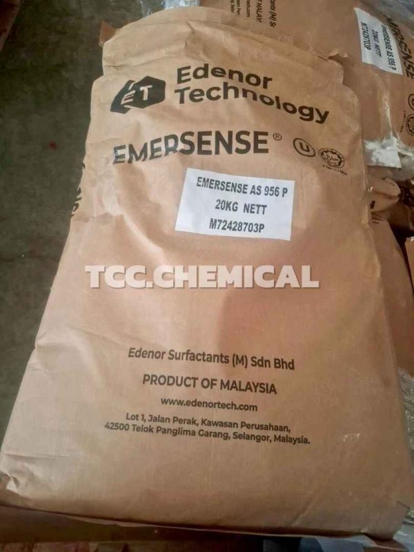 - Emersense AS-956P หรือที่เรียกกันทั่วไปว่า ผงฟองเส้น / ผงฟอง / สารเพิ่มฟอง (SLS) เป็นสารที่สังเคราะห์ขึ้นมาในรูปแบบผงเนื้อละเอียด มีความเข้มข้นของ Active สูงถึง 95% ใช้เพียงเปอร์เซ็นต์เล็กน้อยก็สามารถให้ฟองจำนวนมาก ฟองนุ่ม ละเอียด และสม่ำเสมอ เหมาะสำหรับการใช้งานในผลิตภัณฑ์ทำความสะอาดและผลิตภัณฑ์ชำระล้างหลากหลายประเภท