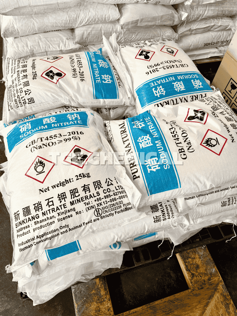 - Sodium Nitrate เป็นสารประกอบอนินทรีย์ที่ประกอบด้วยโซเดียม (Na) และไนเตรต (NO3) โดยมักอยู่ในรูปของผลึกหรือผงละเอียด สารนี้ถูกผลิตขึ้นเพื่อรองรับการใช้งานในหลากหลายอุตสาหกรรมและกระบวนการทางเคมี เนื่องจากคุณสมบัติที่คงตัวและไม่ติดไฟง่าย
